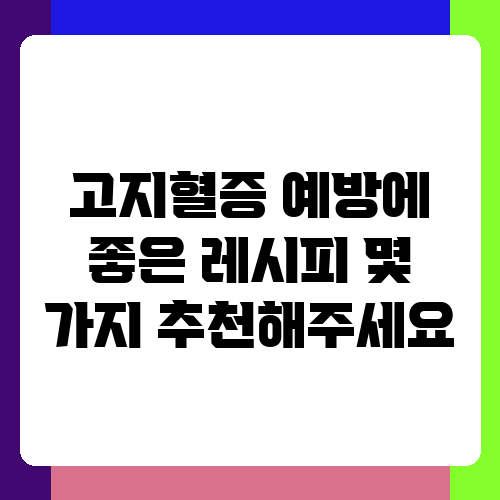 고지혈증 예방에 좋은 레시피 몇 가지 추천해주세요