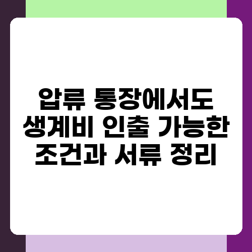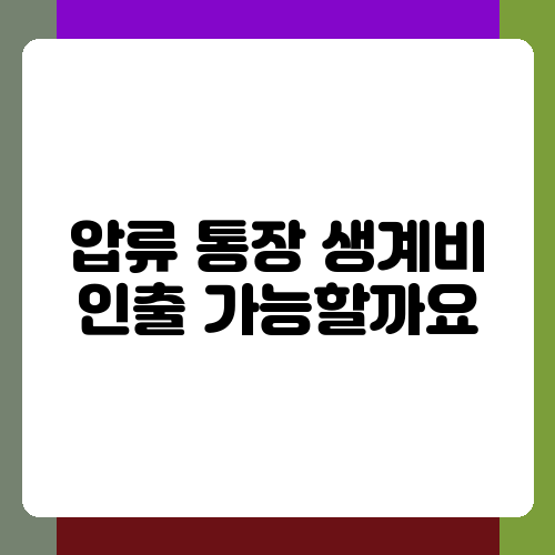 압류된 통장 때문에 생활에 어려움을 겪고 계신가요? 급여 통장이 압류되었지만, 생활을 유지하기 위한 최소한의 생계비는 반드시 필요합니다. 막막하고 힘든 상황 속에서 어떻게 해야 할지 고민이 많으실 거예요. 하지만 걱정하지 마세요. 압류 통장이라도 생계비를 인출할 수 있는 방법이 있습니다. 이 글에서는 압류 통장에서 생계비를 인출하는 방법과 필요한 서류들을 자세히 알려드리겠습니다. 여러분의 어려움을 조금이나마 덜어드릴 수 있도록 최선을 다하겠습니다.