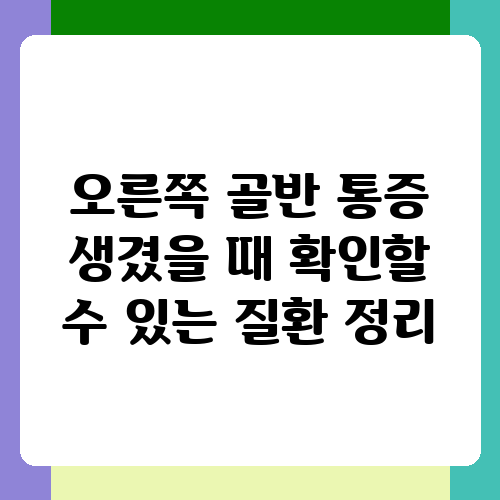 결론적으로, 오른쪽 골반 통증은 다양한 원인으로 발생할 수 있으며, 단순한 근육통부터 심각한 질환까지 가능성을 열어두고 정확한 진단을 받는 것이 중요합니다. 통증이 심하거나 지속된다면, 또는 다른 증상이 동반된다면 즉시 병원을 방문하여 적절한 치료를 받으세요. 건강한 삶을 위해 본인의 몸 상태에 귀 기울이고, 필요한 조치를 취하는 것을 잊지 마세요!