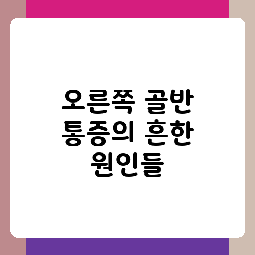 골반 통증은 정말 힘들죠. 앉아있기도, 서있기도, 걷기도 불편하고 일상생활에 큰 지장을 줍니다. 오른쪽 골반에만 통증이 느껴진다면 더욱 걱정이 되실 텐데요. 오른쪽 골반 통증의 원인이 될 수 있는 다양한 질환들을 알아보고, 어떤 경우 병원을 방문해야 하는지 함께 살펴보도록 하겠습니다. 조금만 신경 쓰면 충분히 관리할 수 있으니 너무 걱정하지 마세요!