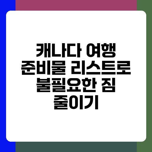 캐나다 여행, 이제 짐 싸는 스트레스 없이 떠나보세요. 준비물 리스트를 꼼꼼히 체크하고, 위에서 소개한 팁들을 활용하면 가볍고 즐거운 여행을 즐길 수 있을 거예요. 행복한 캐나다 여행 되세요!