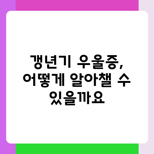 갱년기, 쉽지 않죠. 몸도 마음도 힘든 시기를 보내고 계신 많은 중년 여성분들을 떠올리니 마음이 무겁습니다. 특히 갱년기 우울증은 흔히 나타나는 증상이지만, 혼자 끙끙 앓기 쉬운 부분이기도 합니다. 이 글에서는 갱년기 우울증을 이해하고, 건강하게 극복하는 데 도움이 되는 정보를 여러분과 함께 나누고자 합니다. 함께 힘든 시간을 이겨내고 행복한 중년을 맞이해 보아요.