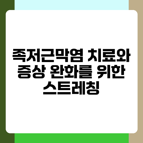 발뒤꿈치 통증 때문에 고생하시나요? 아마 족저근막염일 가능성이 높습니다. 족저근막염은 발바닥에 있는 두꺼운 조직인 족저근막에 염증이 생기는 질환인데요, 오래 서 있거나 걷는 일이 많은 분들이라면 특히 조심해야 해요. 오늘은 족저근막염 증상 완화에 도움이 되는 효과적인 스트레칭 방법들을 알려드리려고 합니다. 꾸준히 따라 하면 통증 완화에 도움이 될 거예요.