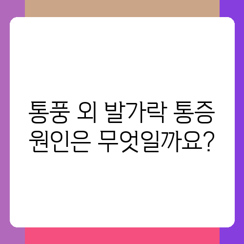 통풍 외에도 발가락 통증을 유발하는 원인은 다양합니다. 예를 들어, 족저근막염은 발바닥의 근막에 염증이 생기는 질환으로 발뒤꿈치와 발가락까지 통증이 퍼질 수 있습니다. 또한, 관절염, 건염, 신경포착 등도 발가락 통증을 유발할 수 있으며, 뼈에 이상이 있거나 류마티스 관절염과 같은 자가면역질환일 가능성도 고려해야 합니다. 무지외반증처럼 발가락 변형으로 인해 통증이 생길 수도 있고요. 만약 발가락 통증과 함께 다른 증상 (예