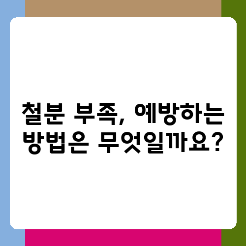 철분 부족을 예방하기 위해서는 평소 균형 잡힌 식단을 유지하는 것이 가장 중요합니다. 다양한 음식을 골고루 섭취하여 철분뿐만 아니라 다른 영양소도 충분히 섭취해야 합니다. 특히, 철분이 풍부한 음식을 꾸준히 섭취하는 것이 중요하며, 철분 흡수를 돕는 비타민 C 섭취도 신경 쓰는 것이 좋습니다. 철분 흡수를 방해하는 음식들은 피하도록 노력해야 합니다. 정기적인 건강 검진을 통해 철분 수치를 확인하고, 문제가 발견되면 조기에 치료를 받는 것이 중요합니다. 평소 규칙적인 운동과 충분한 수면을 취하는 것도 건강을 유지하고 철분 부족을 예방하는 데 도움이 됩니다. 만약 피로감이나 빈혈 증상이 지속된다면, 전문의와 상담하여 철분 부족 여부를 진단받고 적절한 조치를 취하는 것이 좋습니다.