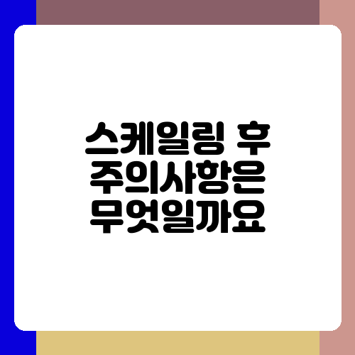 스케일링을 받은 후에는 일시적으로 치아가 시린 증상이나 잇몸이 약간 붓는 증상이 나타날 수 있다고 합니다. 이는 일반적인 반응이므로 크게 걱정할 필요는 없지만, 증상이 심하거나 오래 지속된다면 치과에 다시 방문하여 상담을 받는 것이 좋습니다. 또한 스케일링 후에는 치아 표면이 일시적으로 민감해질 수 있으므로 차가운 음료나 매운 음식은 가급적 피하는 것이 좋습니다. 그리고 꼼꼼한 양치질과 치실 사용을 통해 구강 청결을 유지하는 것이 중요합니다. 치아 건강을 위해 꾸준히 노력하는 것이 중요하다는 점, 꼭 기억하세요.